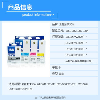 • 商品名称:爱普生188墨盒黑彩