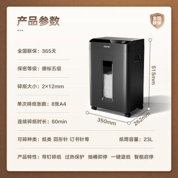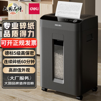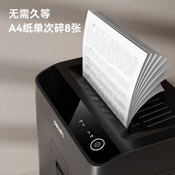 • 商品名称:得力(deli)碎纸机 5级高保密 触屏操作 商用办公长时间碎纸机 大型文件粉碎机GA508(60分钟持久碎 单次8张)