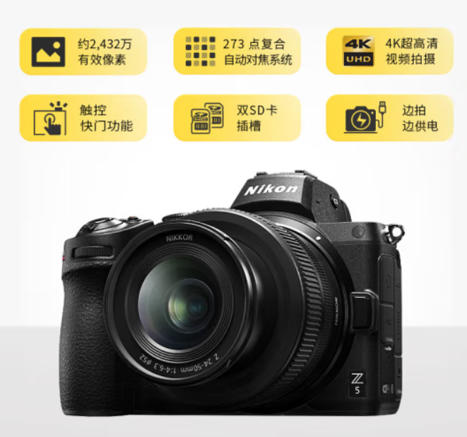 • 商品名称:尼康Z5 24-200mm f/4-6.3 VR照相机套装