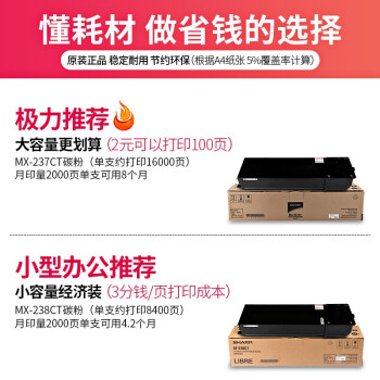 • 商品名称:夏普MX-237CT/238CT原装墨粉碳粉盒