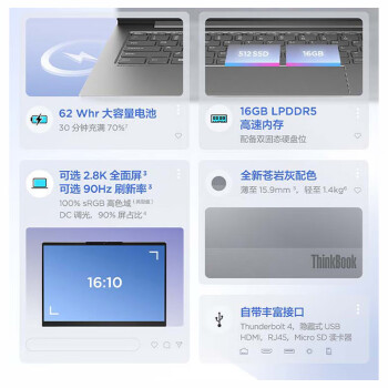ThinkPad联想ThinkBook 14+ 2023 14英寸酷睿轻薄高性能办公游戏笔记本电脑 01CD i5-12500H 独显 16G内存 512G固态硬盘 标配 2.8K高色域屏幕