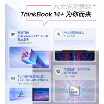 • 商品名称:ThinkPad联想ThinkBook 14+ 2023 14英寸酷睿轻薄高性能办公游戏笔记本电脑 01CD i5-12500H 独显 16G内存 512G固态硬盘 标配 2.8K高色域屏幕
